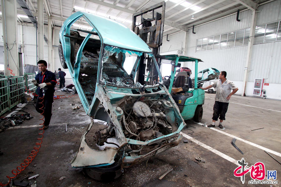 6月28日,天津機動車回收拆解公司,現場工作人員正在拆解賓利零件汽車臺北汽車零件零部件。中國網圖片庫 呂斌攝影(資料圖)