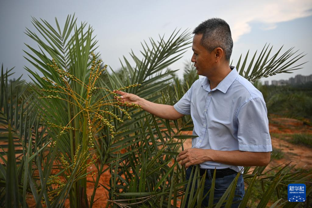 交流4月24日,在教學場地位于海南文昌的中國熱小樹屋科院椰子所椰棗種質資源圃共享空間,科研人員檢查椰棗幼瑜伽場地果生長情況。